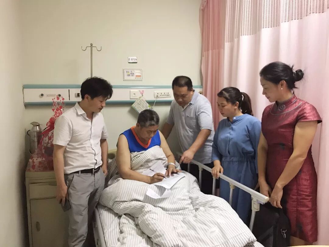 2018年5月21日傍晚7点,我会爱心基金会主席郭湘花,秘书长李锦焕,理事蔡秋香,热心乡亲代表彭茂荣,会员老乡肖伏秀,来到集美二院住院部曾令安师傅的病床前,代表厦门市吉安商会及所有爱心乡亲的关爱,携上健康水果篮和两天内筹捐的爱心捐助款22156元,前来探望关心曾师傅,解决他治病断药、无钱吃饭的燃眉之急。